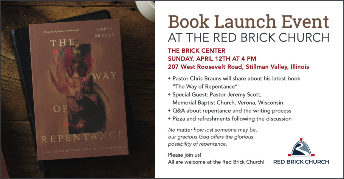 Pastor Chris Book Signing Celebration will be Sunday, April 12th at 4:00 pm in the Brick Center. Pizza will be provided and all proceeds from the sale of the books will go to the church. Everyone is invited to join us and purchase their copy of the “